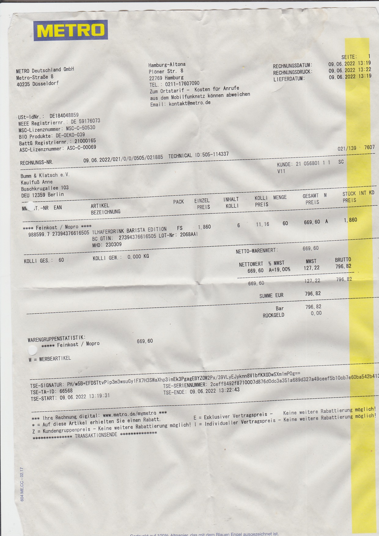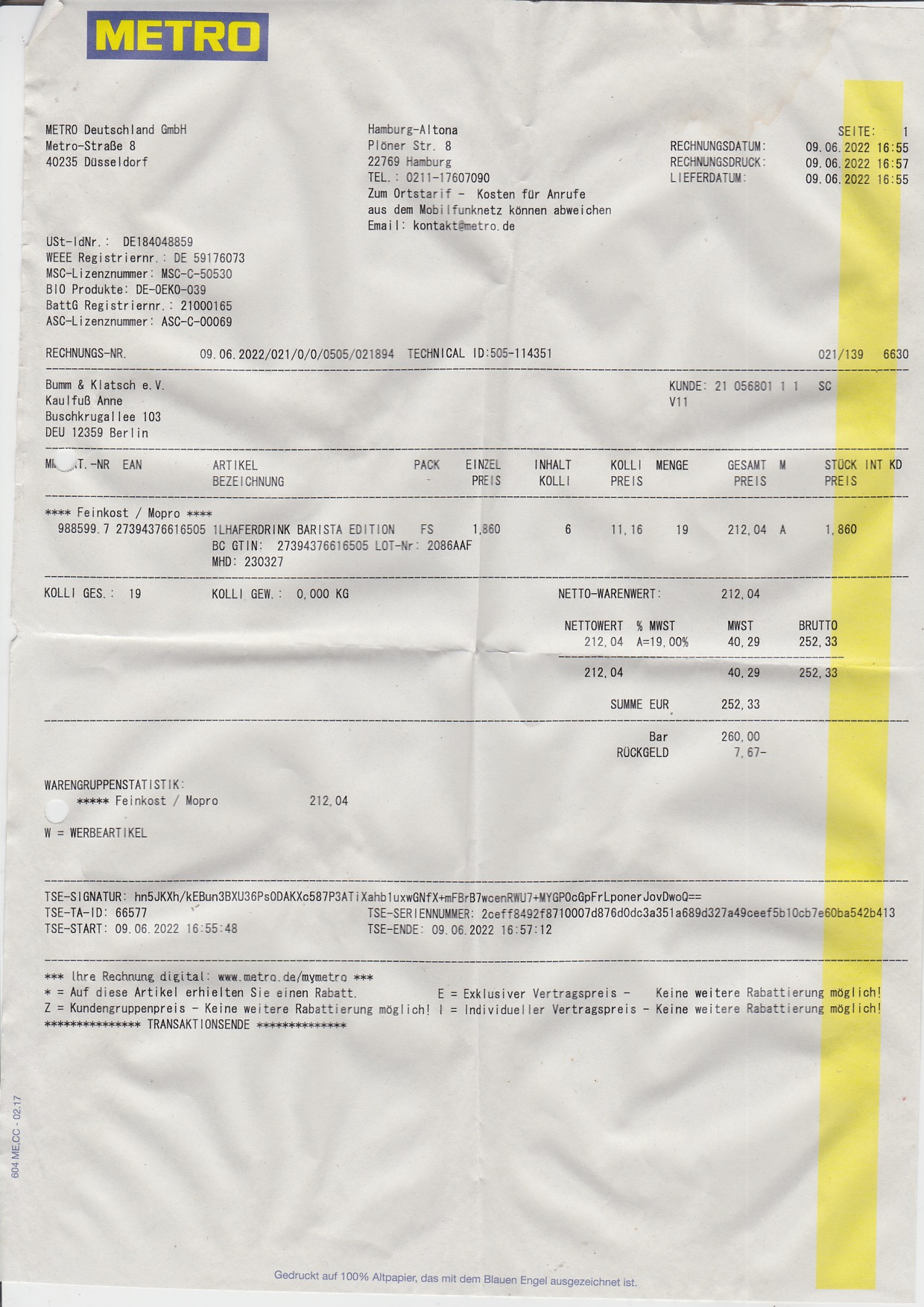 Die Wartung sollte von 2019 abgezogen werden. Falls das relevant ist für die Unterlagen.