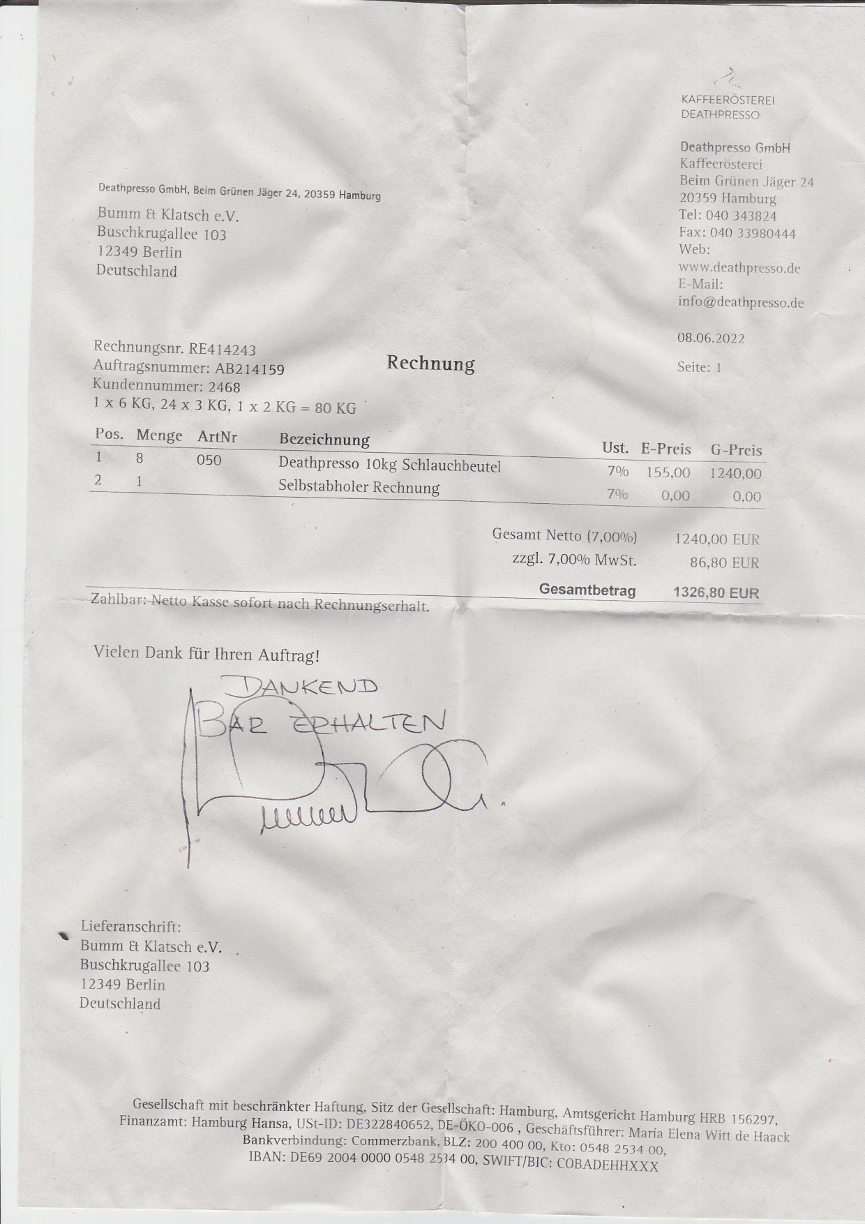 Die zwei mit Invoice betitelten Rechnungen von Miles stelle ich dem Kutter, da ich mir ein